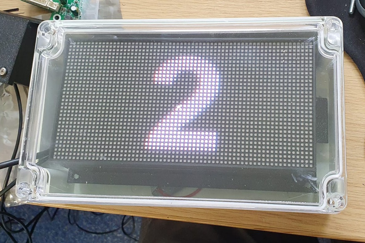 If a big outdoor-viewable display is needed, RGB matrix panels are a good solution. These are made to be mounted onto frames to make LED walls, but you can buy them individually at fairly low cost - often called "HUB75" panels. They are basically a big shift register and can be controlled by a small micro - in this case I used an ESP32 module.The matrix panel is mounted in a 3D-printed ABS frame which is then inside an IP65 enclosure for weatherproofing. The resolution of the display is 64x32